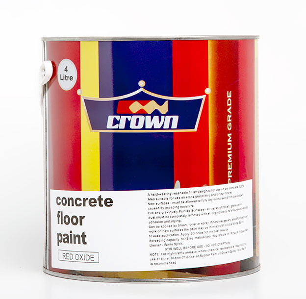 It can also be used on timber floors. New concrete floors must be allowed to dry out completely before applying Crown Floor Paint. It is based on a tough resin medium, pigmented to provide abrasion resistance and first-class adhesion.